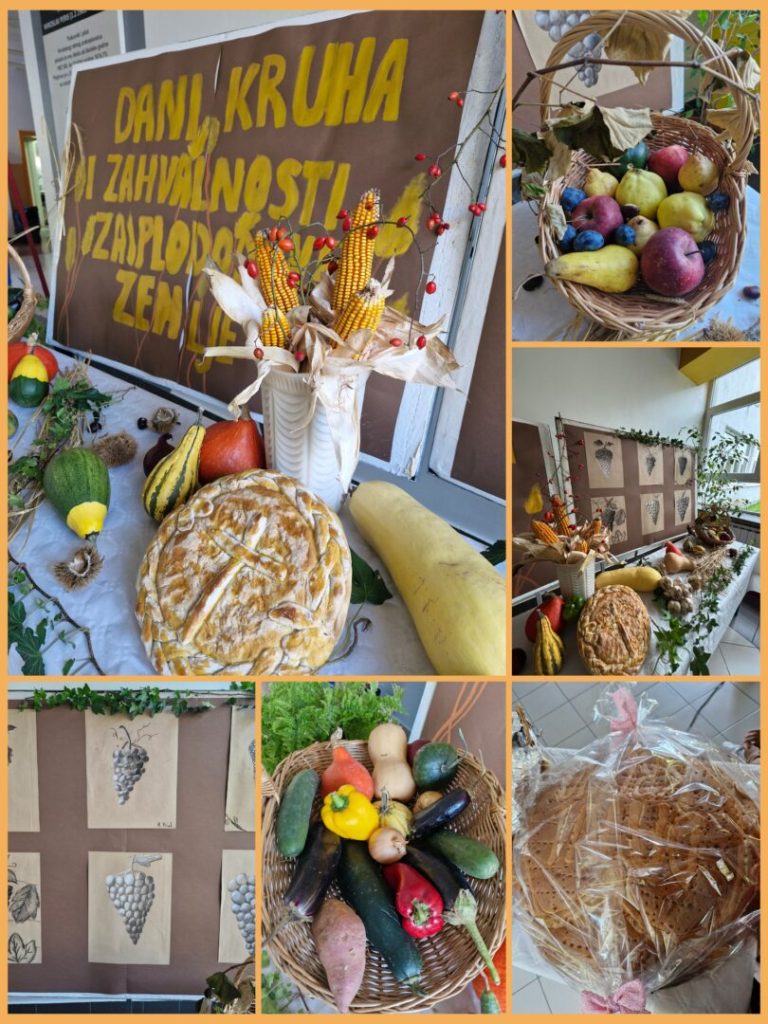 U našoj školi obilježeni su Dani kruha i zahvalnosti za plodove zemlje, u kojima su sudjelovali učenici od 1. do 4. razreda. Učenici su, 16. listopada, uz pomoć svojih učiteljica, pripremili prigodan program kojim su istaknuli važnost kruha, rada i zahvalnosti.